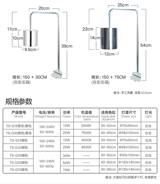 Silver or Black Colour- Planted light 25W or 12W